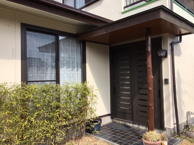 函南町にお住いのS様、旧建物の玄関サッシ並びに居室のサッシをカバー工法により改修しました。また、屋根及び外壁の塗り替えを行いました。