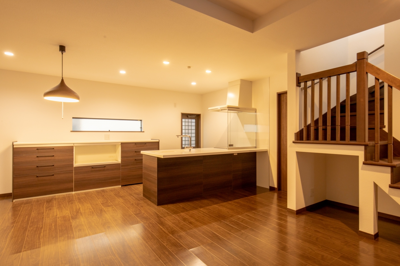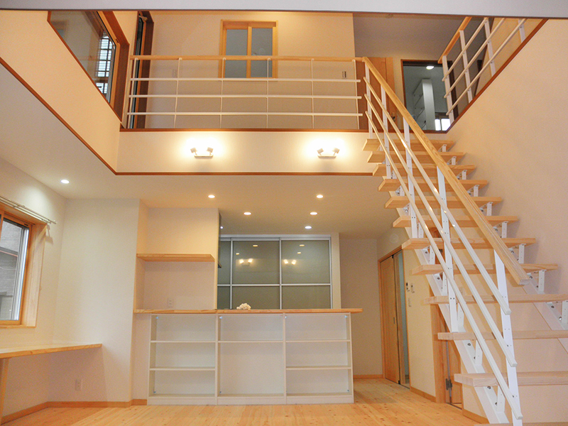 沼津市のI様邸は、若いご夫婦が土地購入から新築をいたしました。土地購入から約半年のスケジュールでコミュニケーションを取りながら進めてまいりました。お客様のこだわりの建物が内外装デザインに現れていると思います。屋根・外壁の色調が茶系を中心としたデザインであり、内装はモノトーン調の色彩にこだわって、特に階段は象徴的なものになっております。